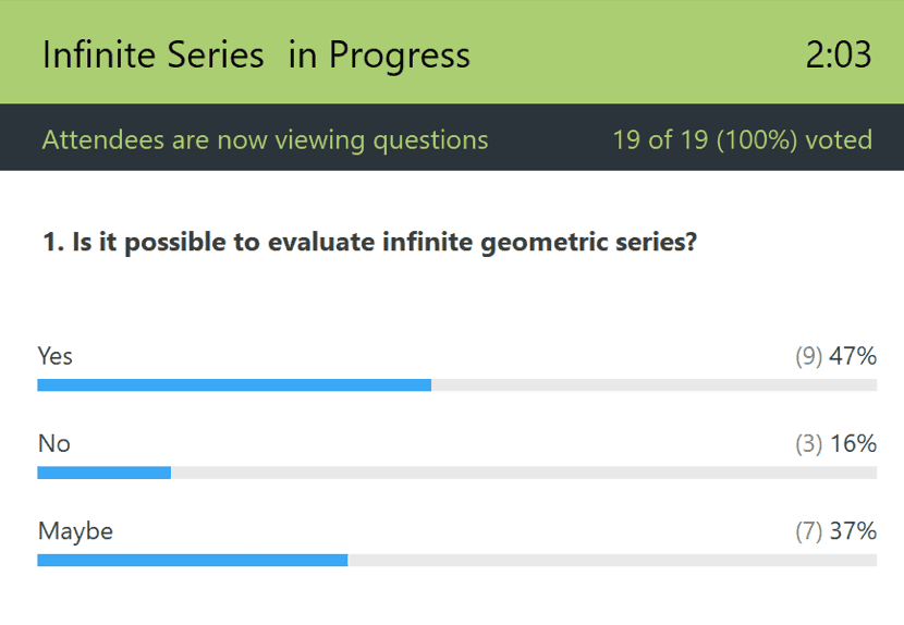 The Zoom poll feature is another great option to encourage class participation. It does require the teacher to set up the poll in advance but it’s an effective way to get immediate feedback and full participation from all students.