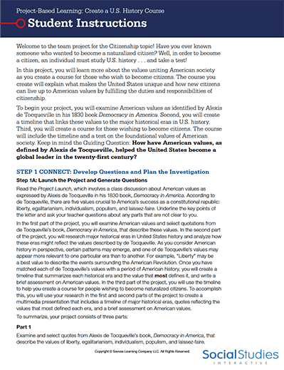 In this inquiry activity from U.S. History Interactive, students will have the opportunity to create a U.S. History course for aspiring citizens. They will discover the background of U.S. citizenship and work together to create something that reflects U.S. history and values through a series of inquiry activities and reflections.